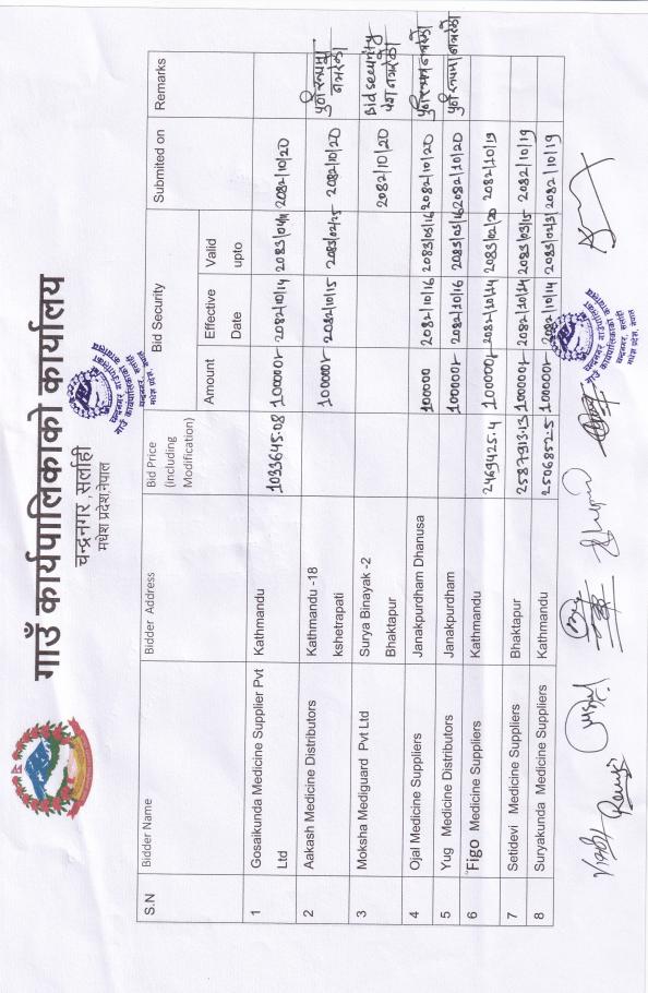 औषधीको शिलबन्दी दरभाउ पत्र खोलेको मुचुल्का