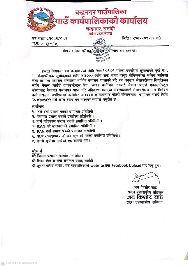 लेखा परिक्षक सूचीकृत हुन म्याद थप सम्बन्धमा ।