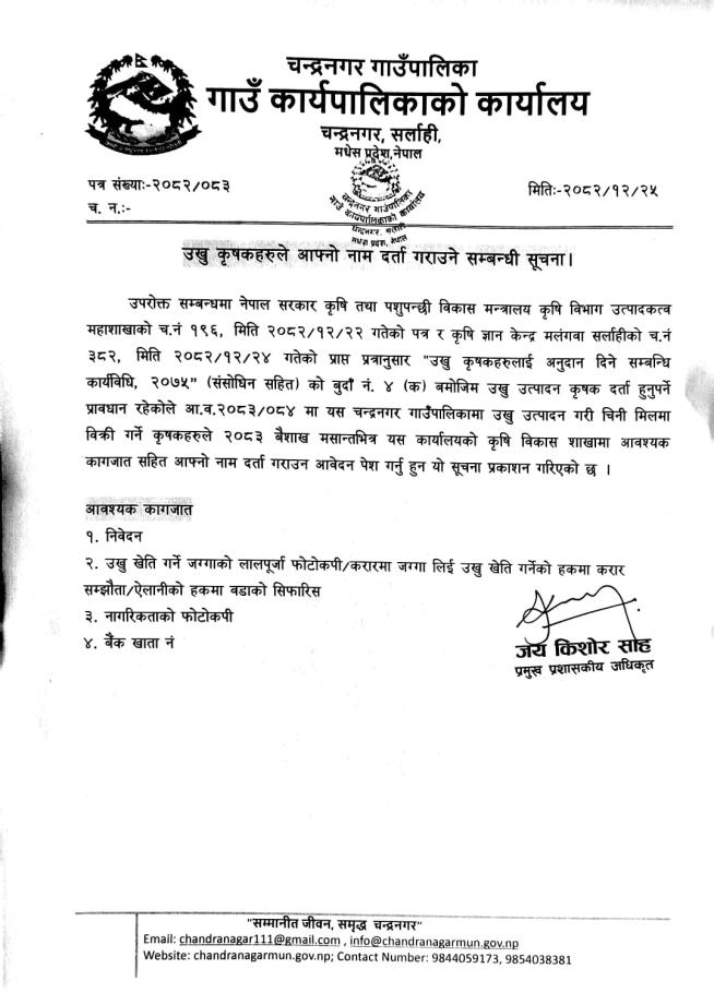 » उखु किशानले आ-आफ्नो नाम दर्ता गराउने बारे सार्वजनिक सूचना |