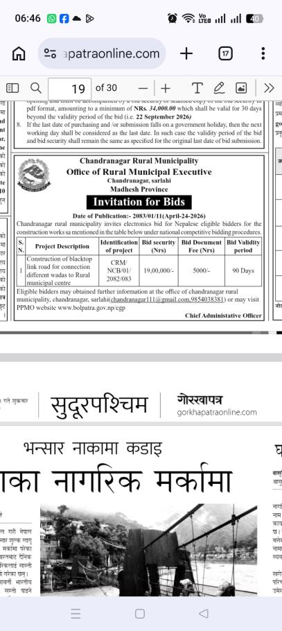 » गोरखा पत्रमा गरिएको विधुतीय बोल पत्र आह्वान |